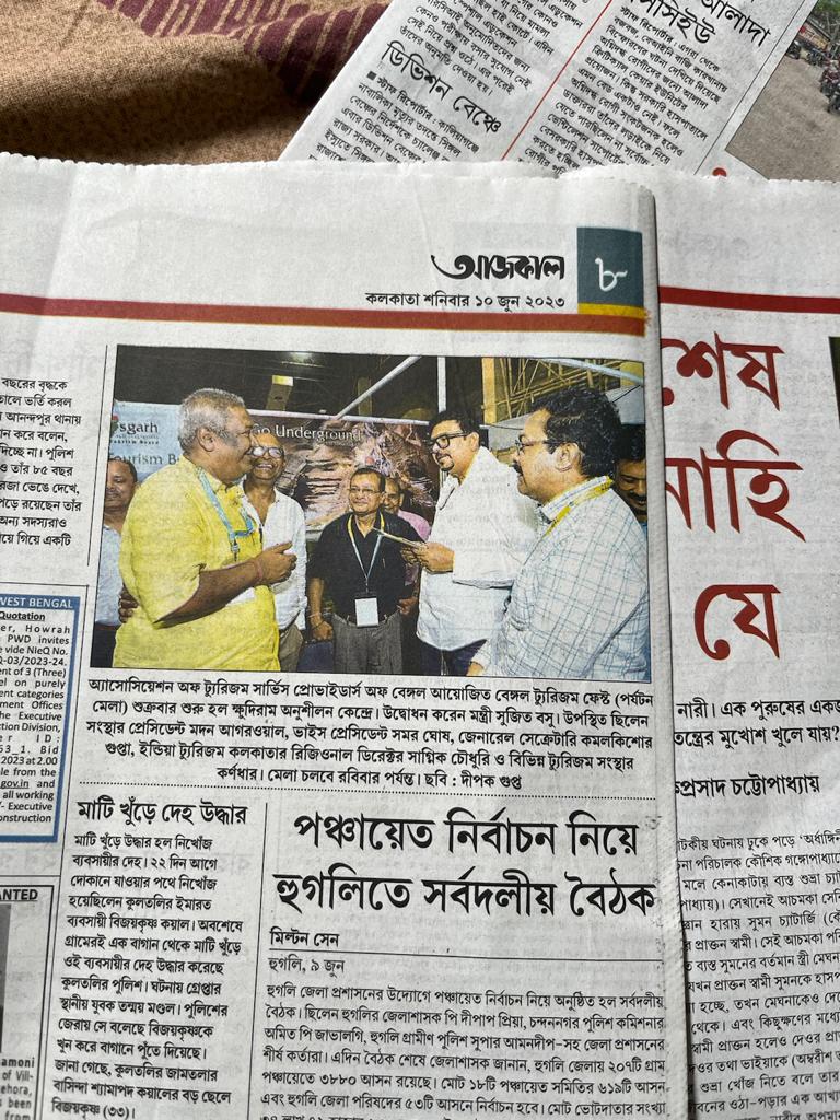 ATSPB’s initiatives and events have consistently received coverage across leading newspapers and media platforms. From cultural celebrations to tourism awareness campaigns, our activities reflect our commitment to the growth and vibrancy of the tourism industry in Bengal. Explore this section to see glimpses of our journey through the media lens.